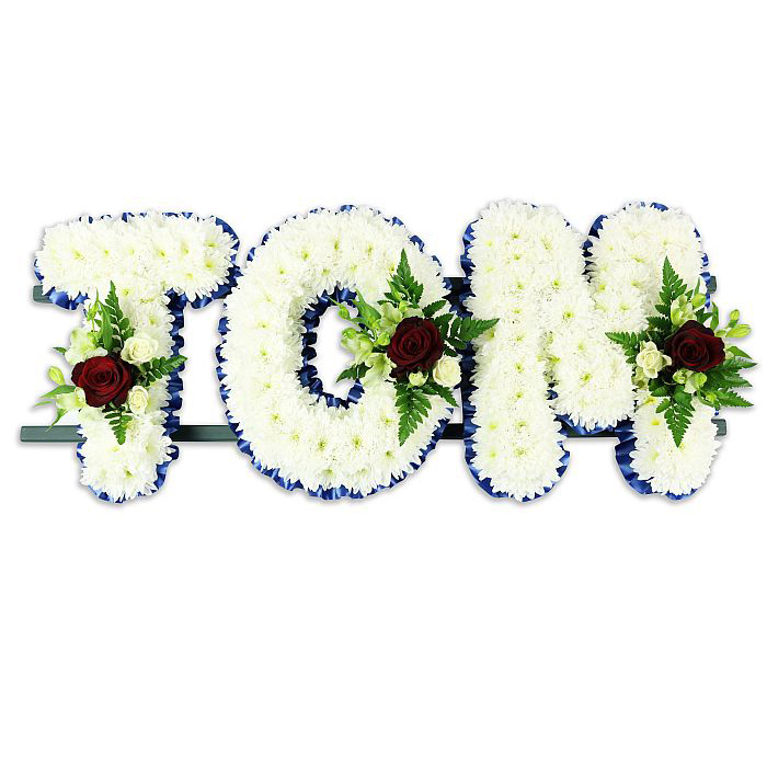 The tribute measures approximately 90cm (35") in length, 33cm (13") in width and 20cm (8") in height, making it ideal for display at the funeral service or memorial. Our skilled florists in Marks Gate select premium blooms and carefully arrange each letter to ensure a balanced, elegant finish. Roses are delivered with their protective guard petals intact to keep inner petals fresh during transit; these can be gently removed on arrival for the perfect presentation.